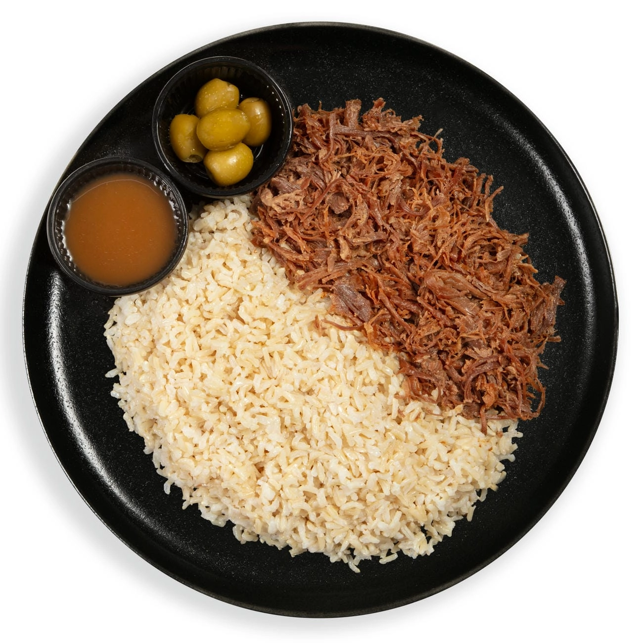 رست بیف، برنج قهوه ای، کنجد، کاپ زیتون طعم دار، کاپ سس گوشت