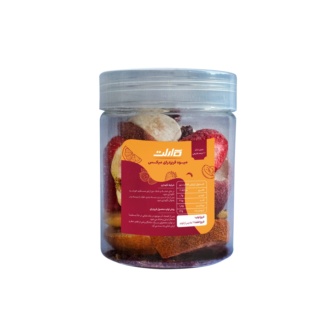 میوه فریزدرای میکس معمولی بدون شکر ۱۰۰درصد طبیعی فاقد افزودنی درای میوه های: توت فرنگی زردالو کیوی شاه توت سیب موز نارنگی توت فرنگی